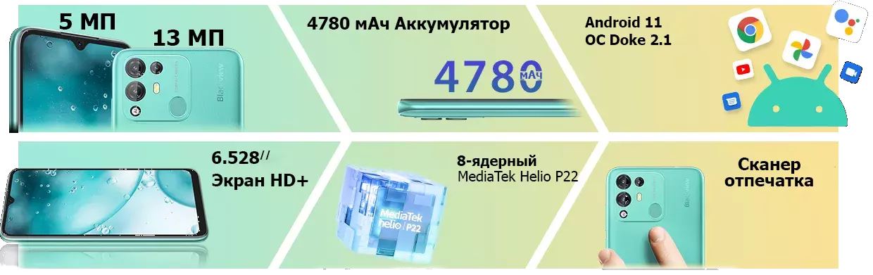 Большой экран и большой аккумулятор в лёгком корпусе. Blackview A55 Pro очень удобно лежит в руке.